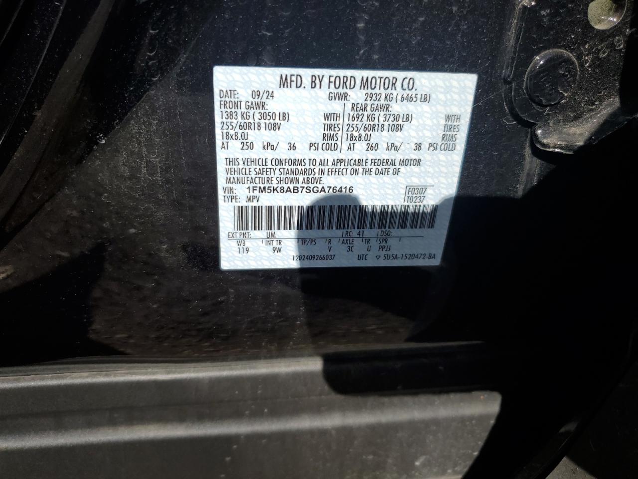 - ВИН: 1FM5K8AB7SG******