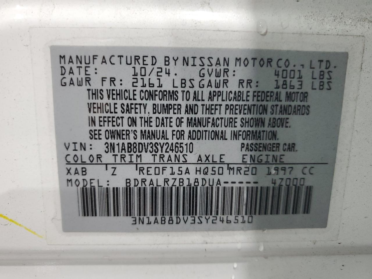 - ВИН: 3N1AB8DV3SY******