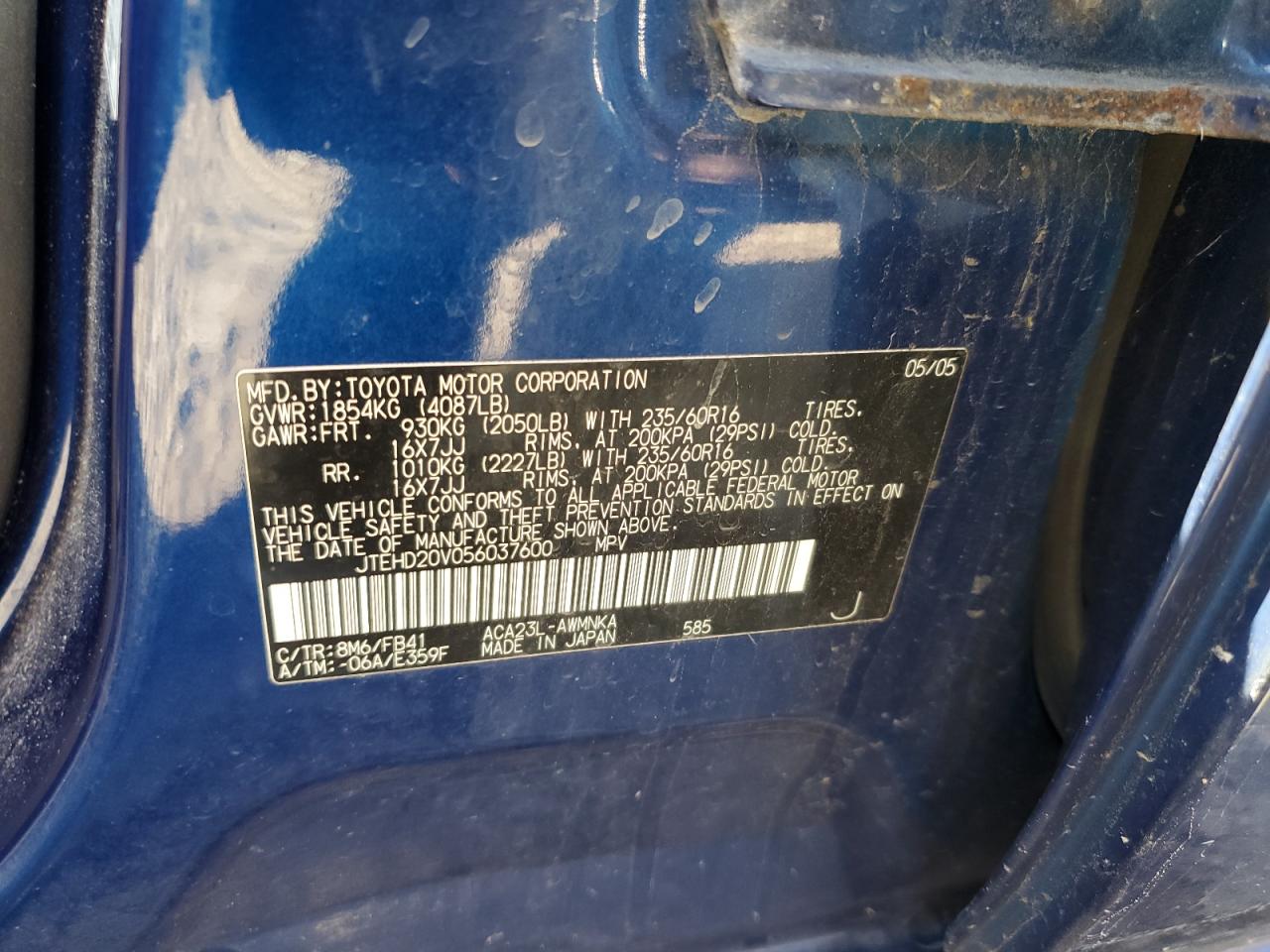 - ВИН: JTEHD20V056******
