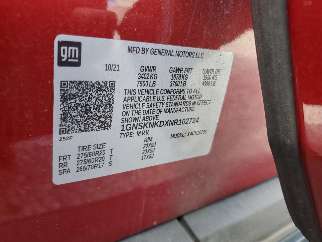 - ВИН: 1GNSKNKDXNR******