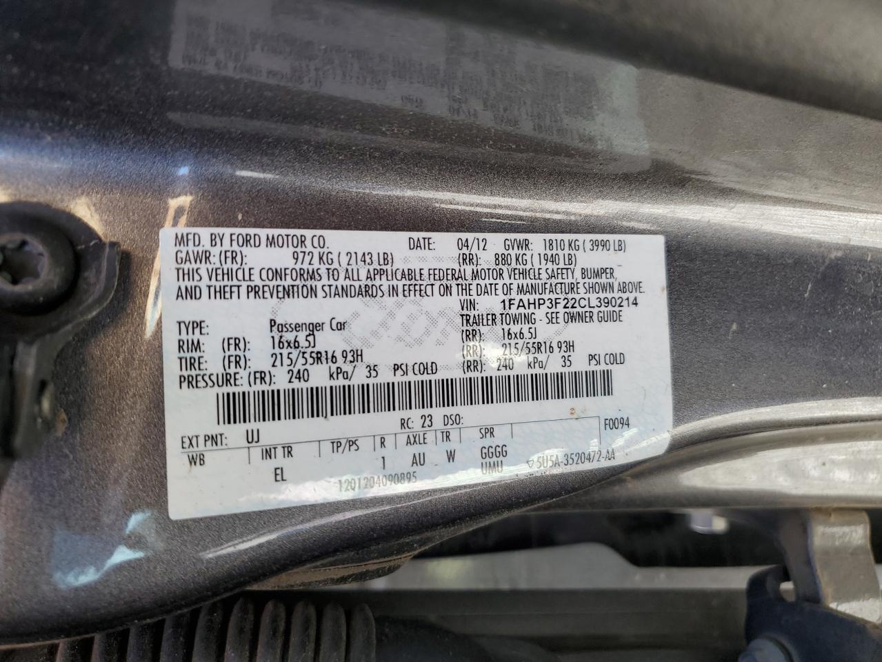 - ВИН: 1FAHP3F22CL******