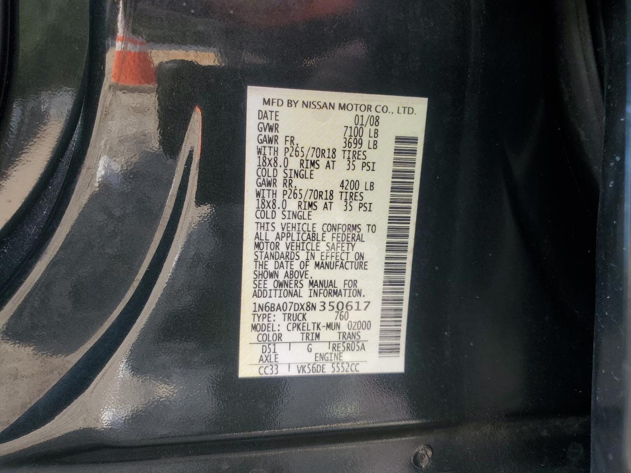 2008 NISSAN TITAN XE из США