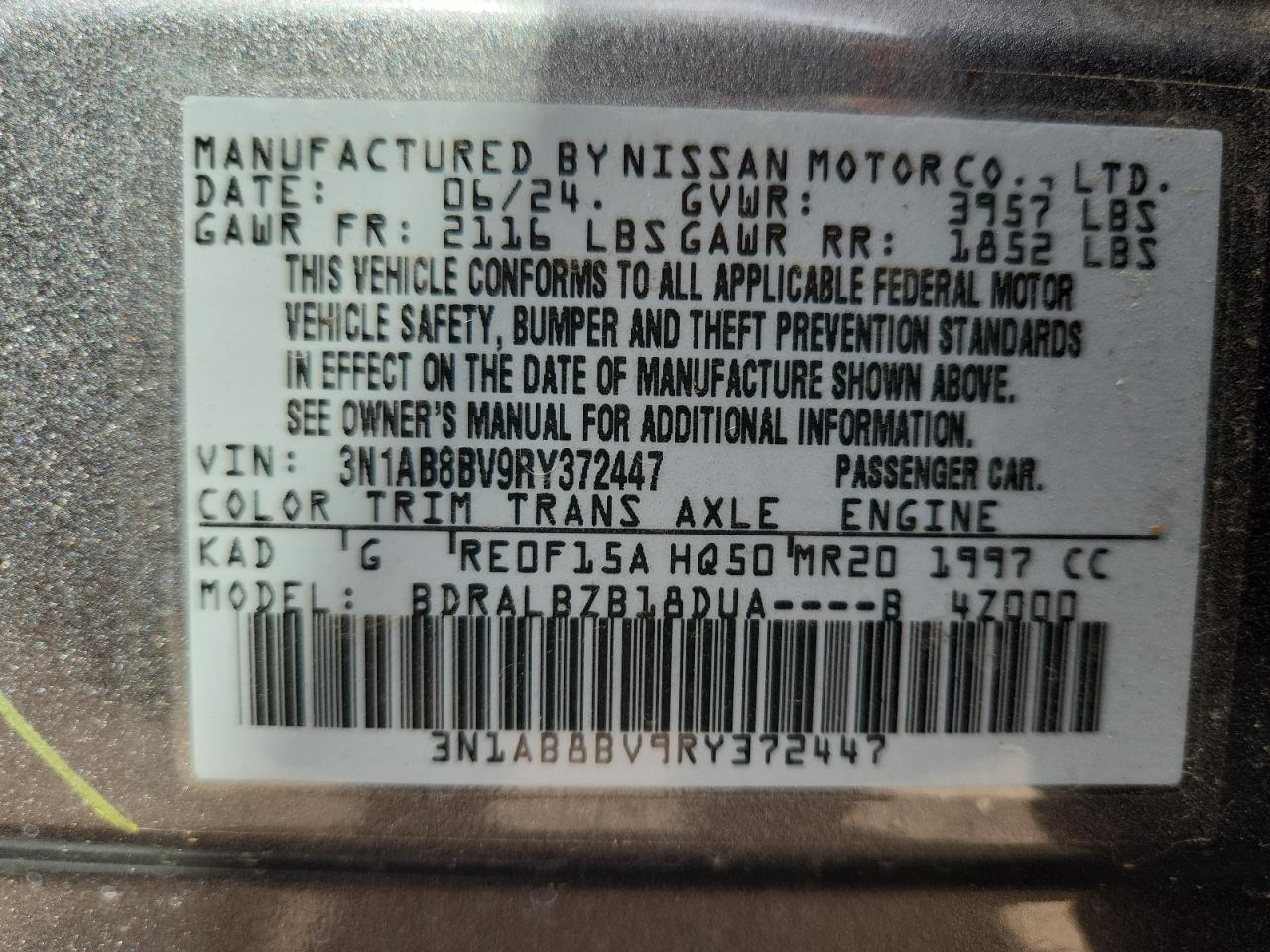 - ВИН: 3N1AB8BV9RY******