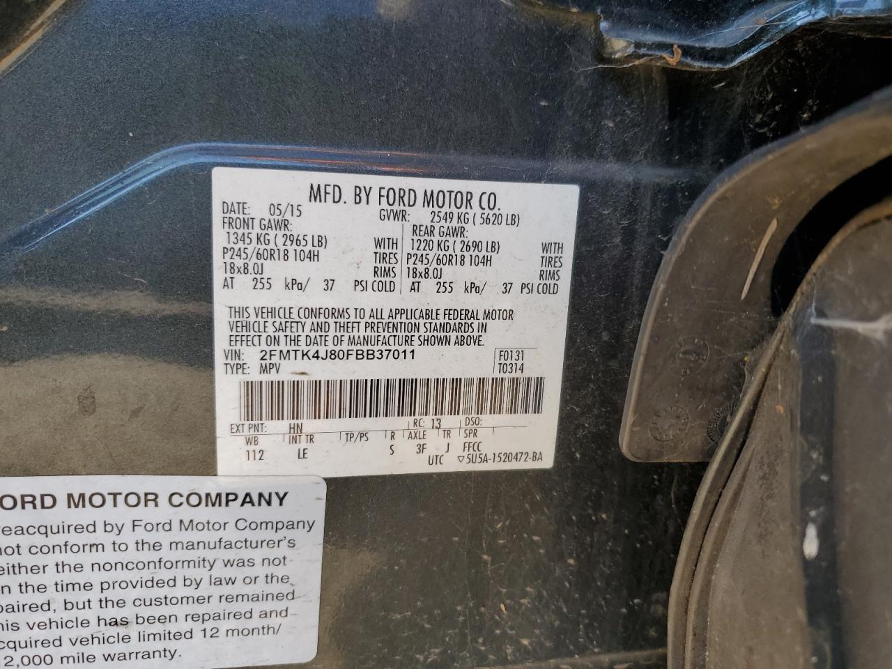 - ВИН: 2FMTK4J80FB******