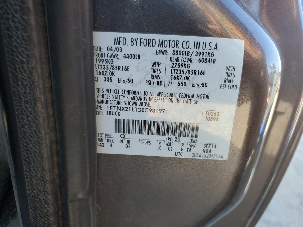 - ВИН: 1FTNX21L13E******