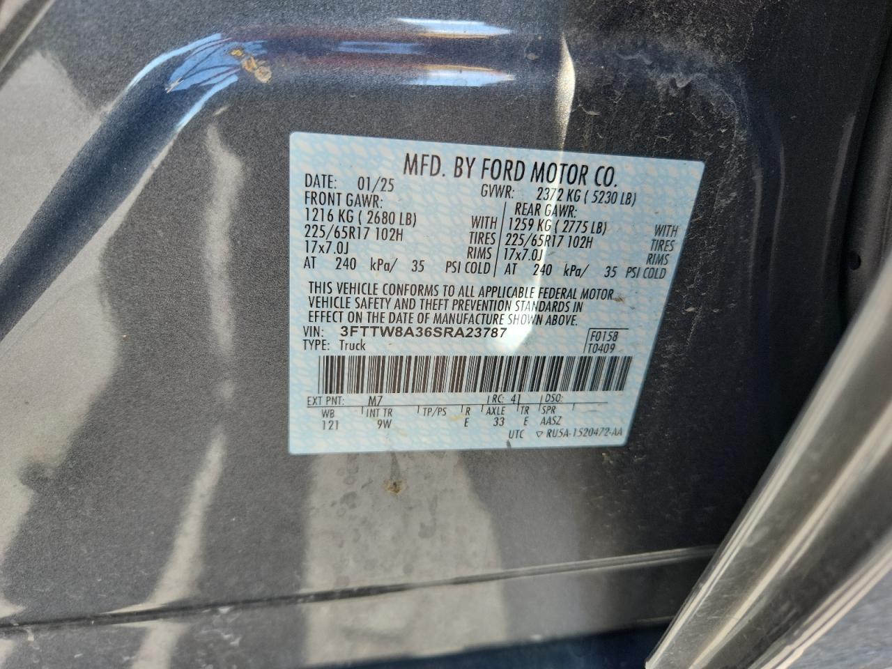 - ВИН: 3FTTW8A36SR******