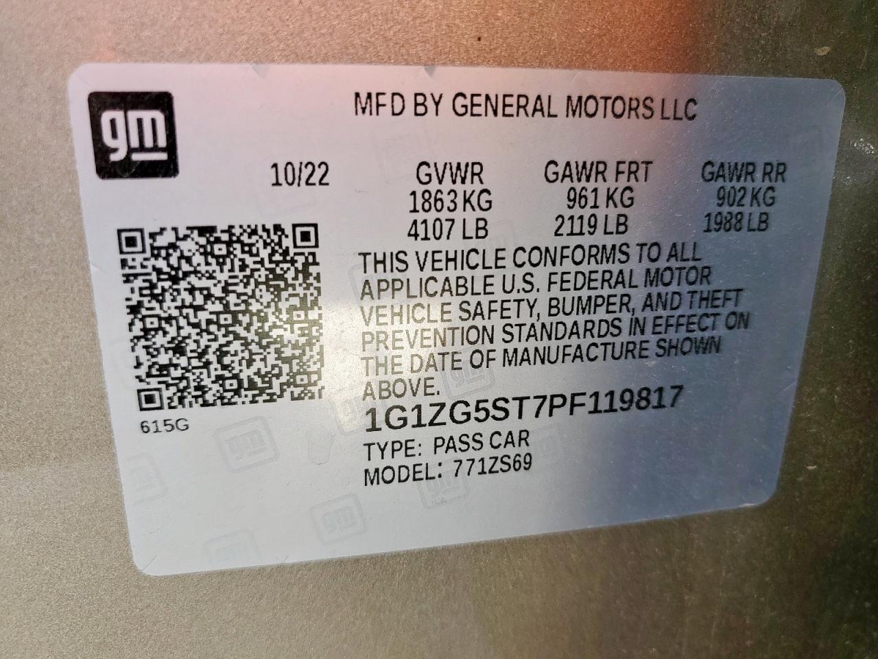 - ВИН: 1G1ZG5ST7PF******