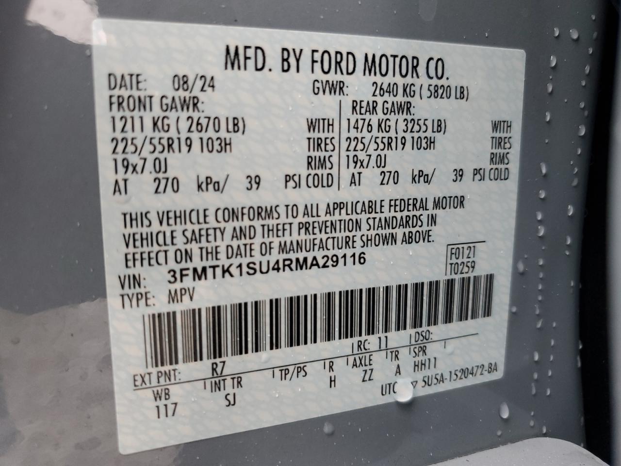 - ВИН: 3FMTK1SU4RM******