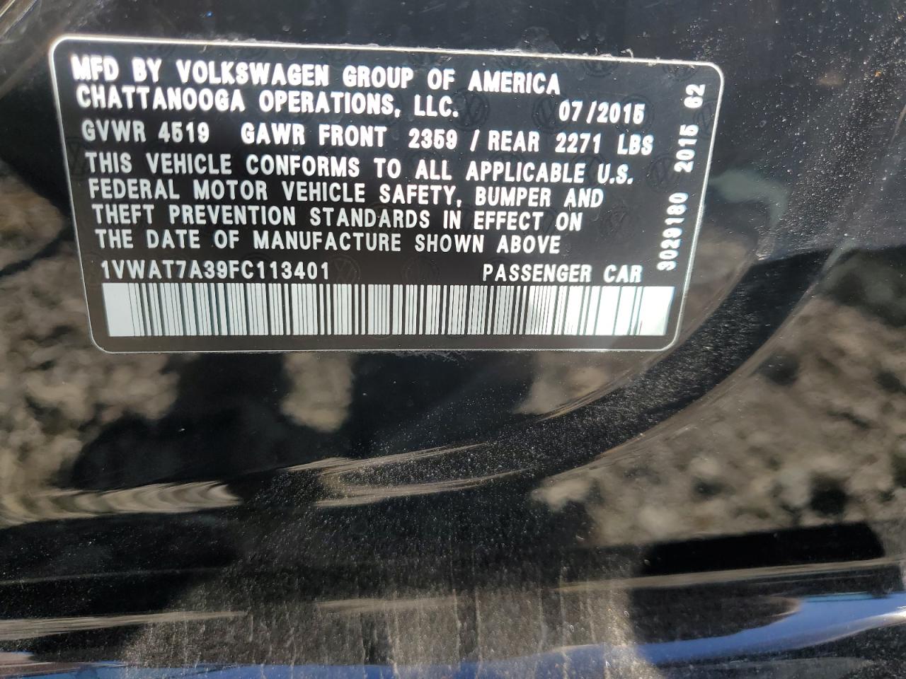 - ВИН: 1VWAT7A39FC******