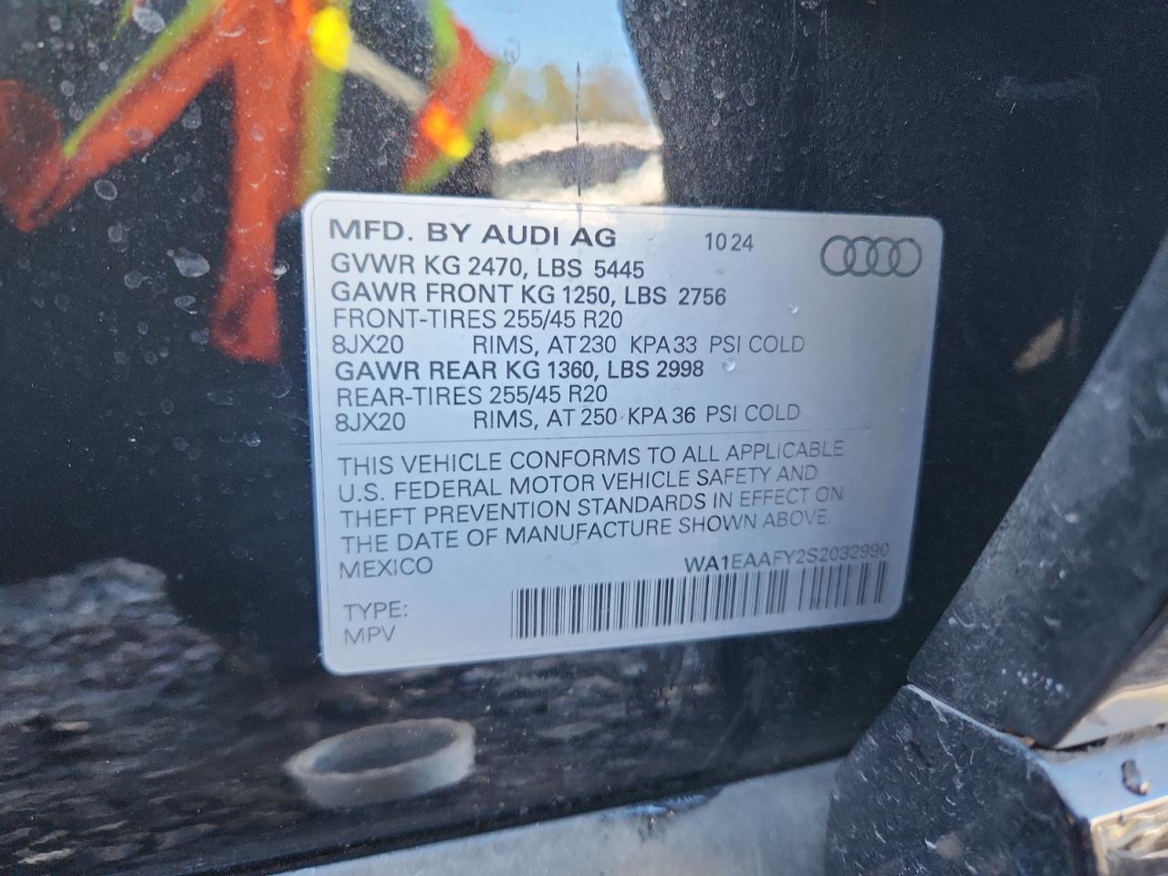- ВИН: WA1EAAFY2S2******