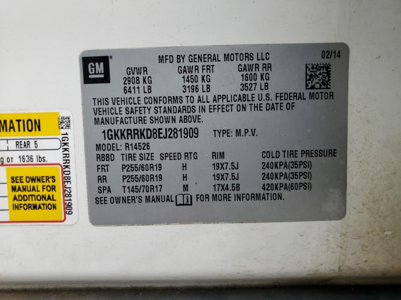 - ВИН: 1GKKRRKD8EJ******