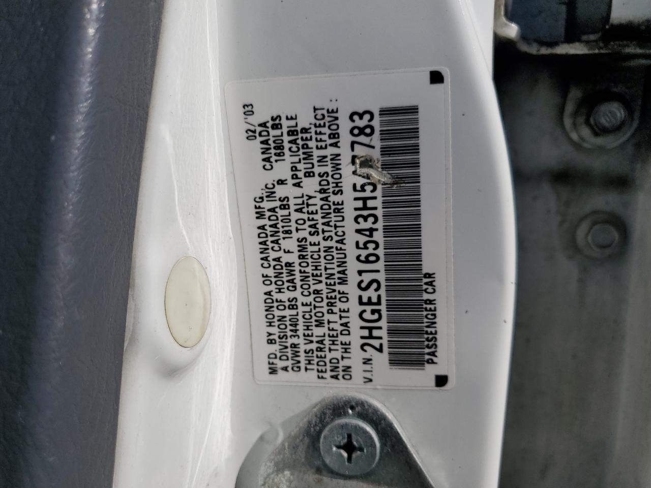 - ВИН: 2HGES16543H******