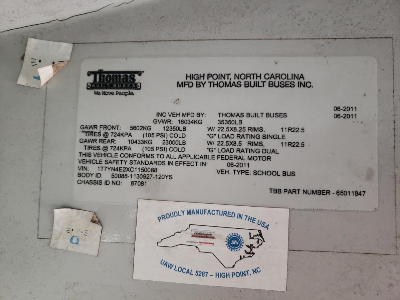 2012 THOMAS SAF-T-LINER HDX - SCHOOL BUS