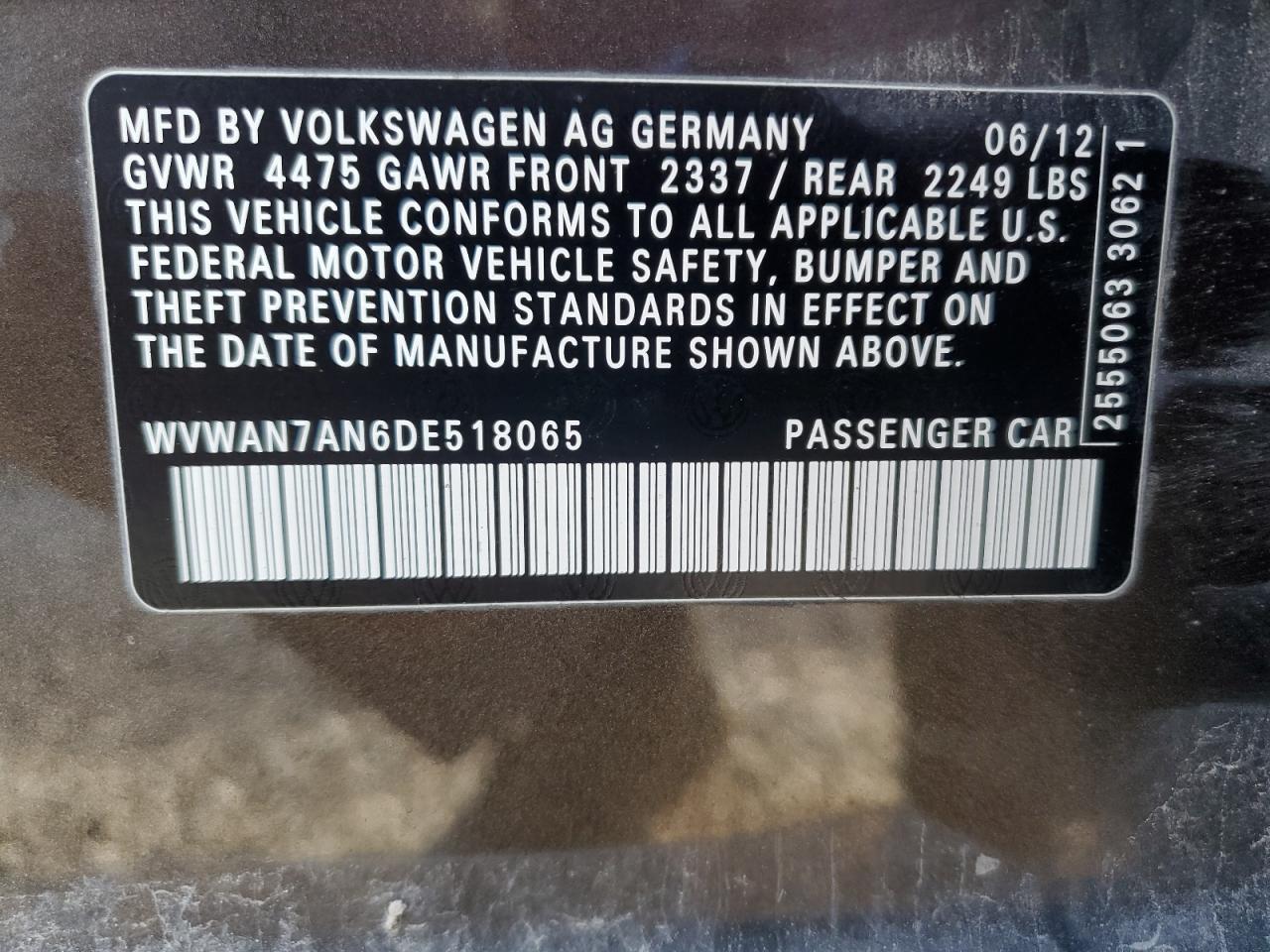 - ВИН: WVWAN7AN6DE******