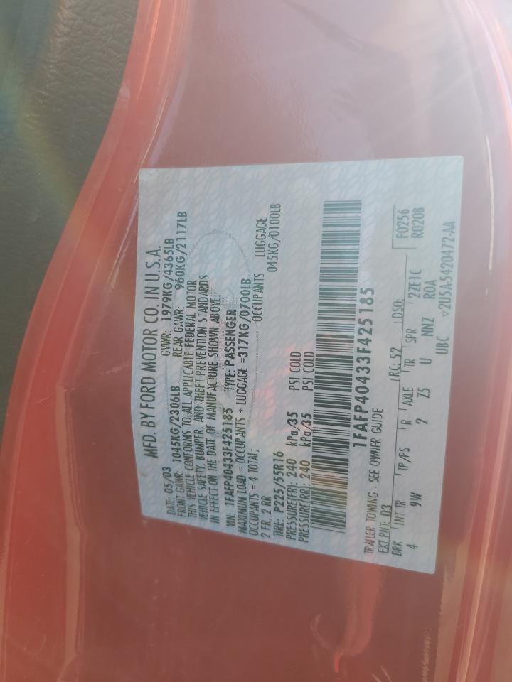 - ВИН: 1FAFP40433F******