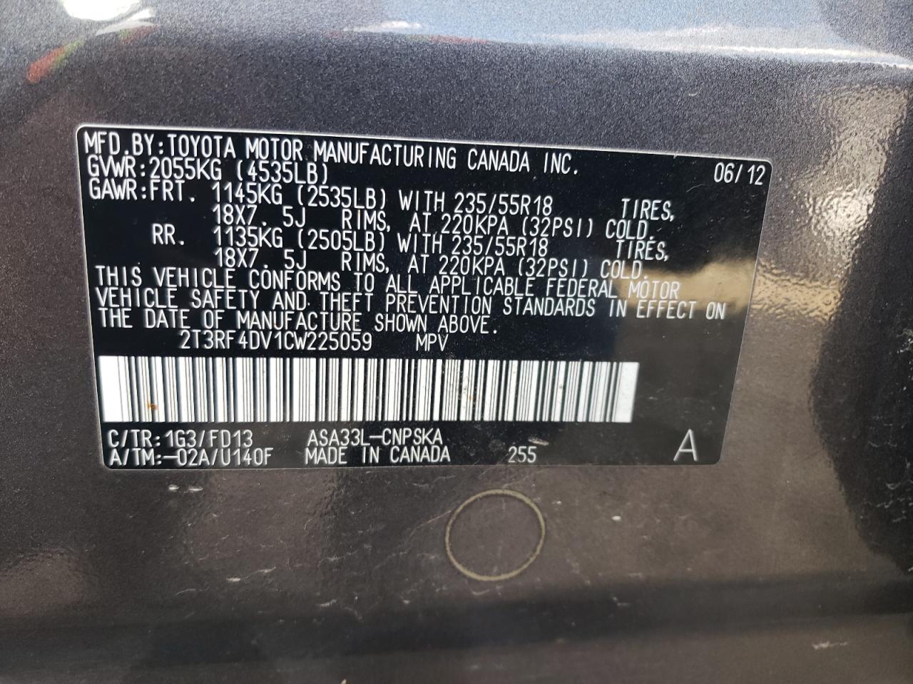 - ВИН: 2T3RF4DV1CW******