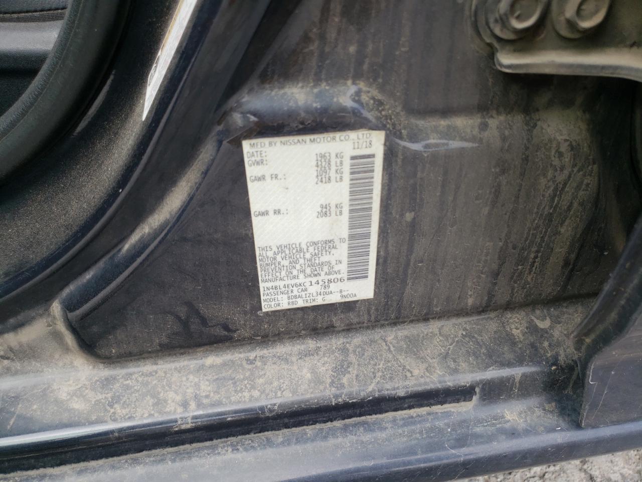 - ВИН: 1N4BL4EV6KC******