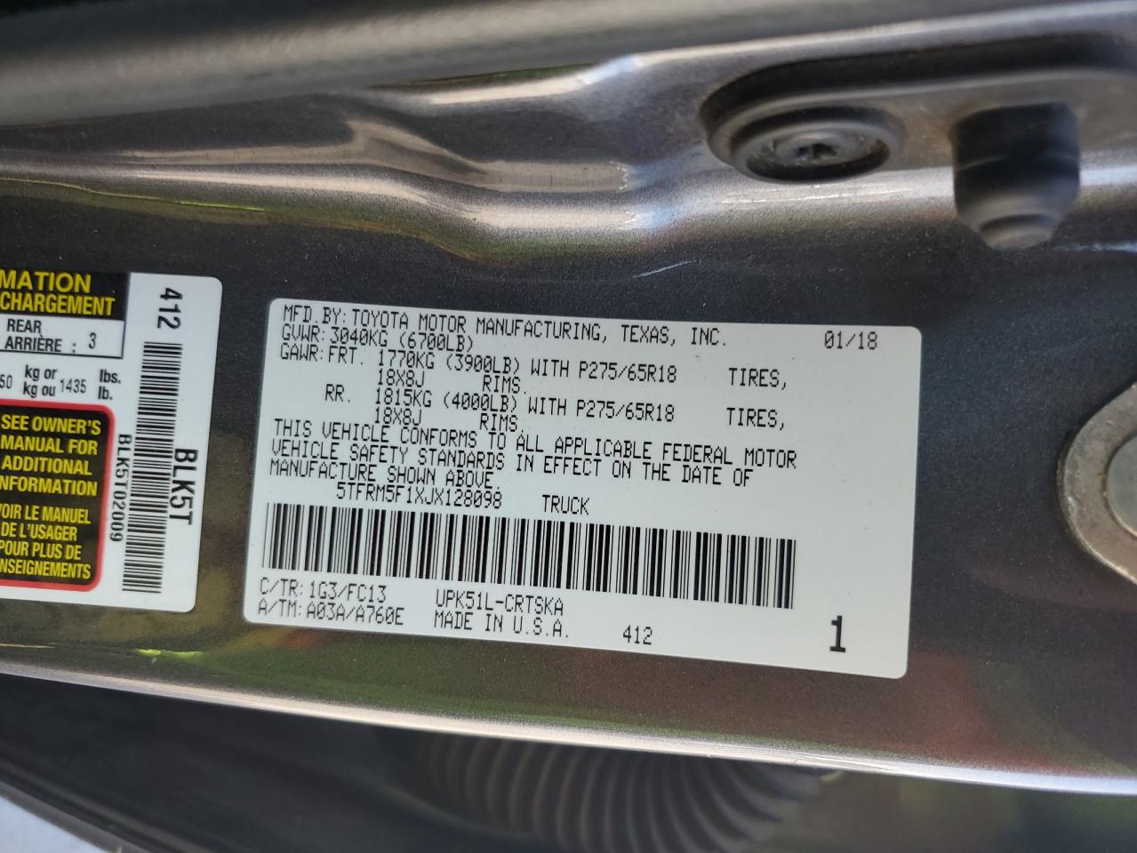 - ВИН: 5TFRM5F1XJX******