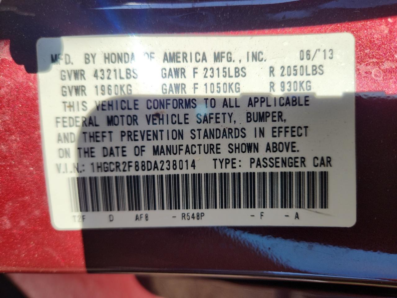 - ВИН: 1HGCR2F88DA******