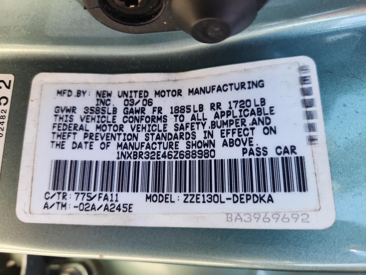 - ВИН: 1NXBR32E46Z******