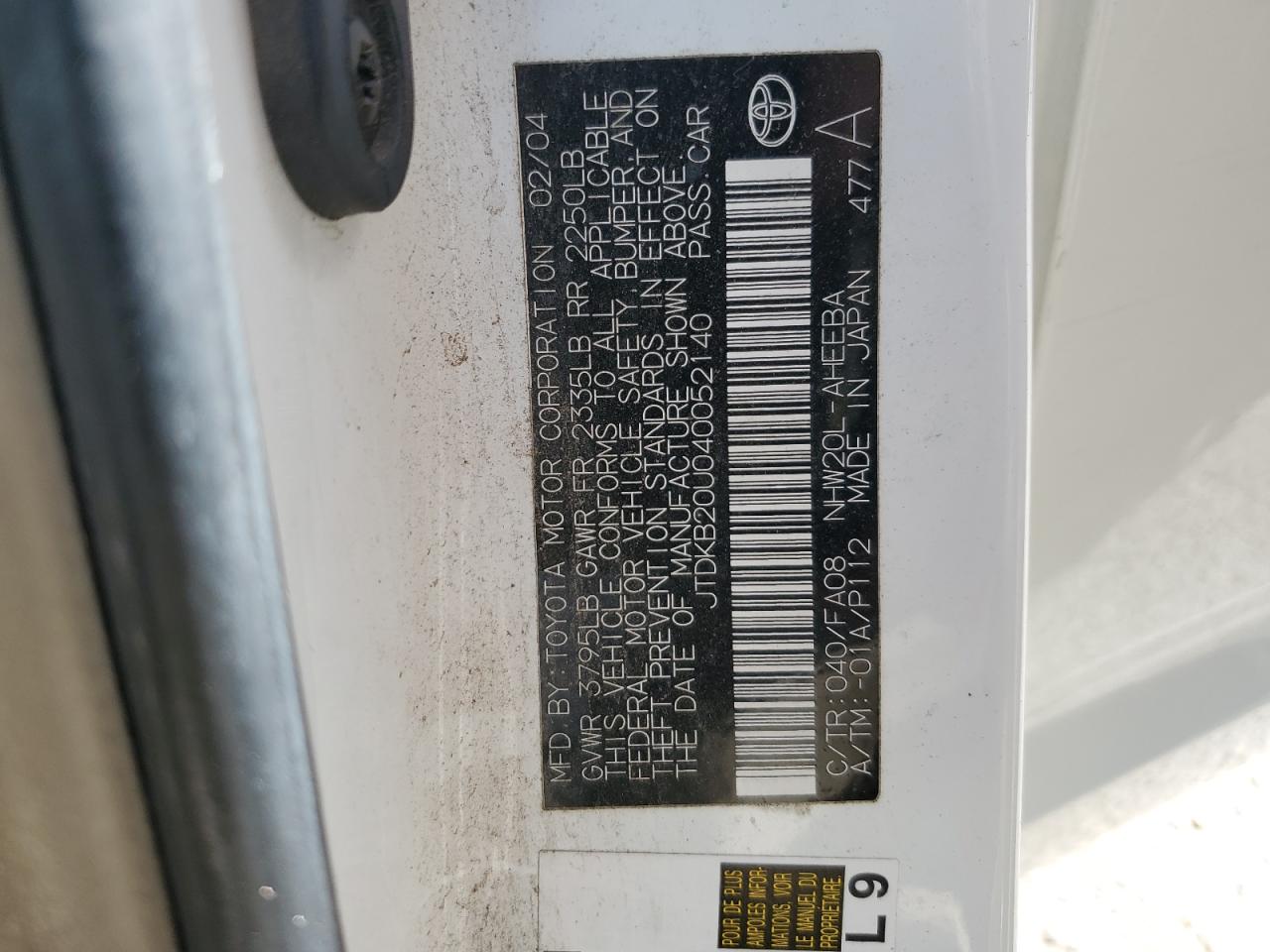- ВИН: JTDKB20U040******