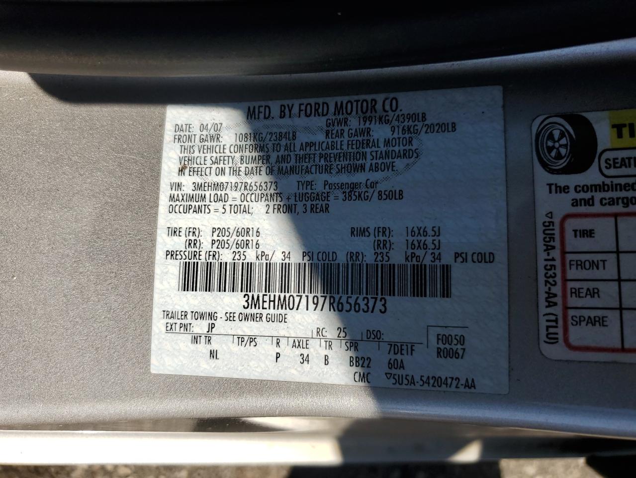 2007 MERCURY MILAN из США