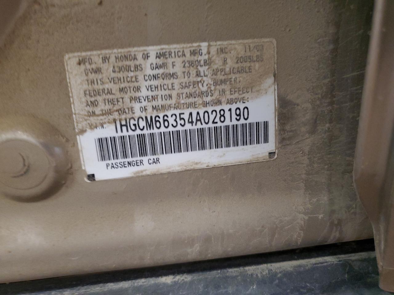 - ВИН: 1HGCM66354A******
