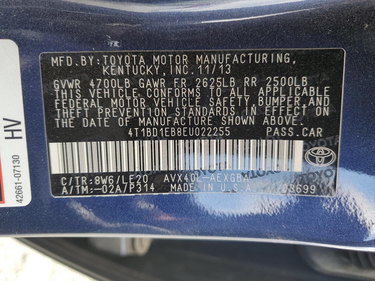 - ВИН: 4T1BD1EB8EU******