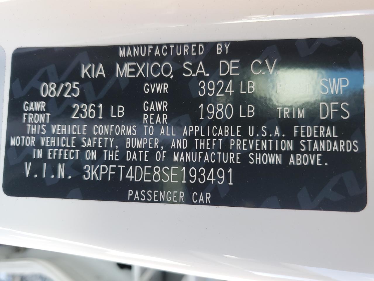 - ВИН: 3KPFT4DE8SE******