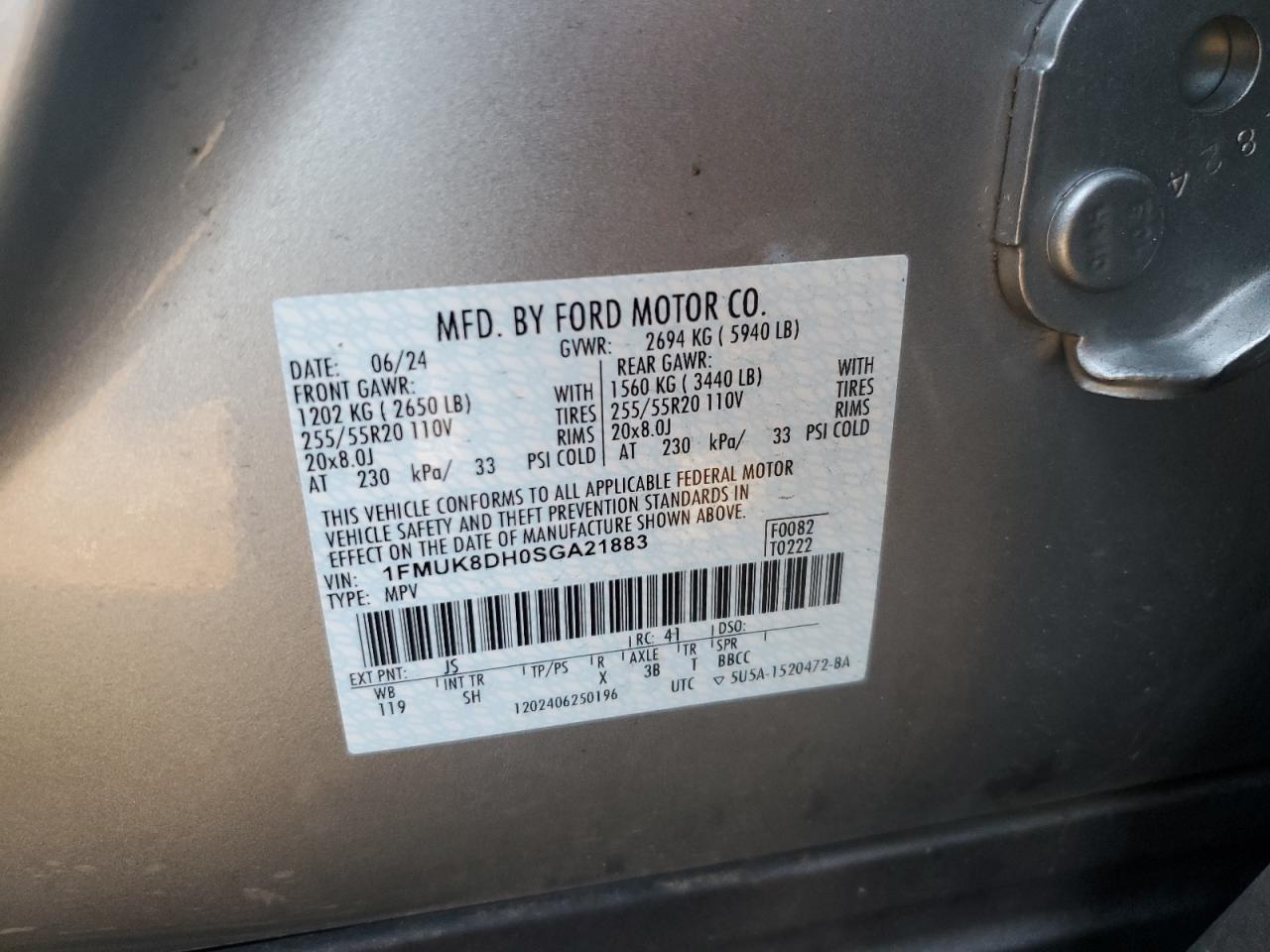 - ВИН: 1FMUK8DH0SG******