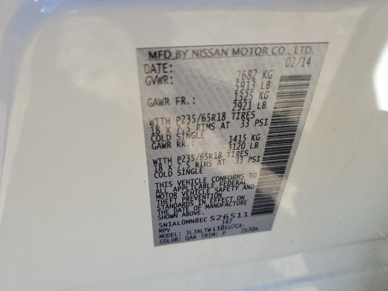 - ВИН: 5N1AL0MN8EC******