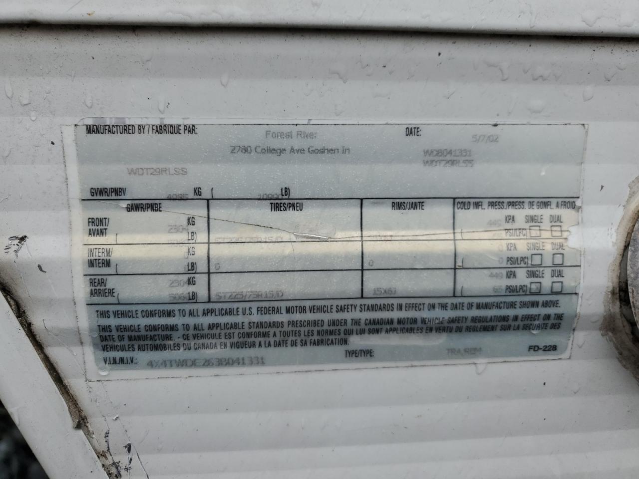 2003 WILDWOOD FIFTH WHEE из США