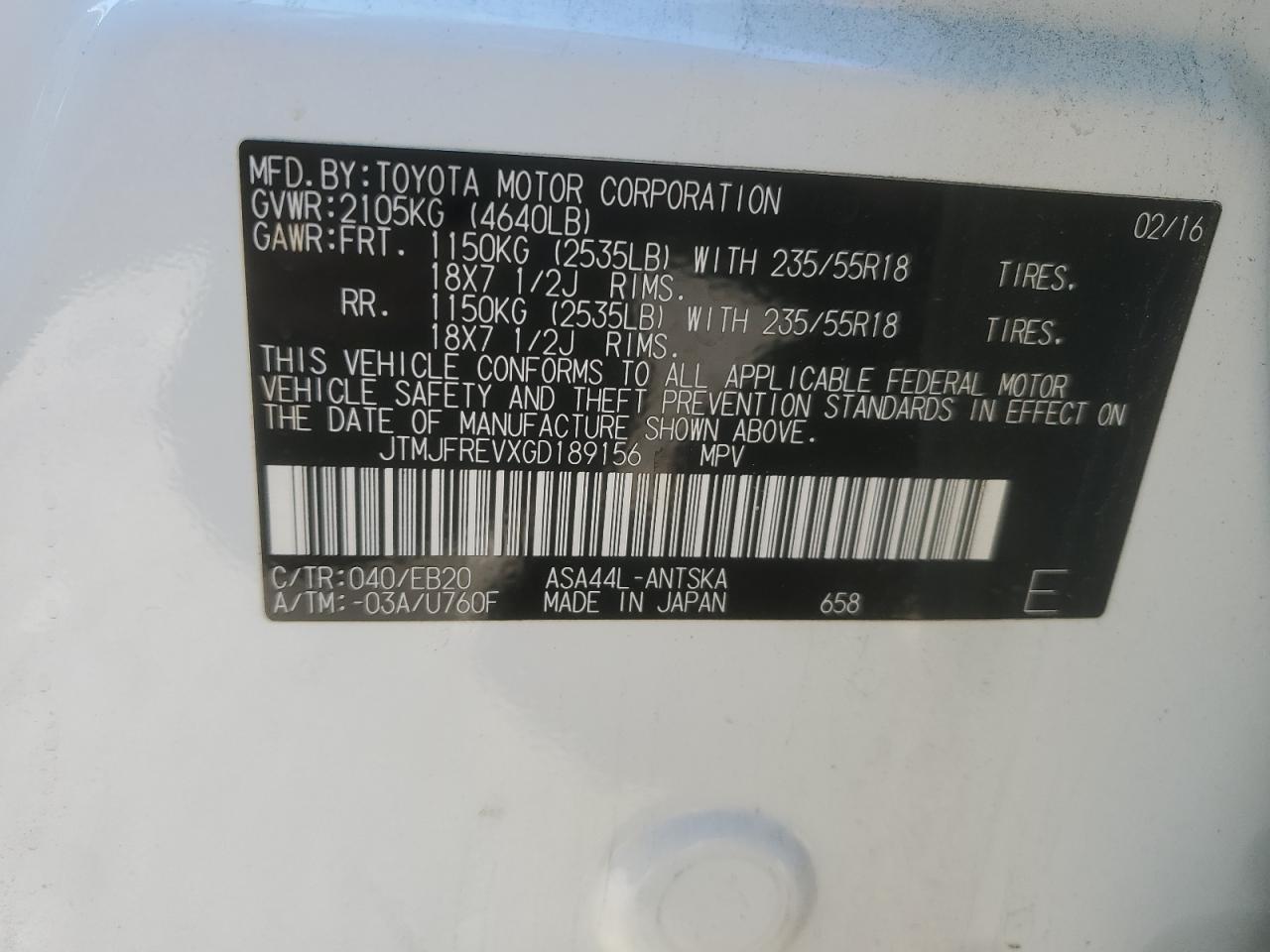 - ВИН: JTMJFREVXGD******