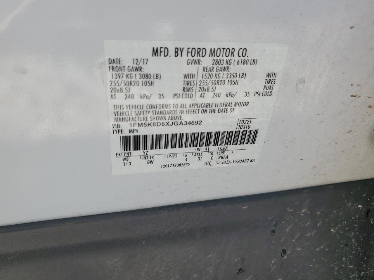 - ВИН: 1FM5K8D8XJG******
