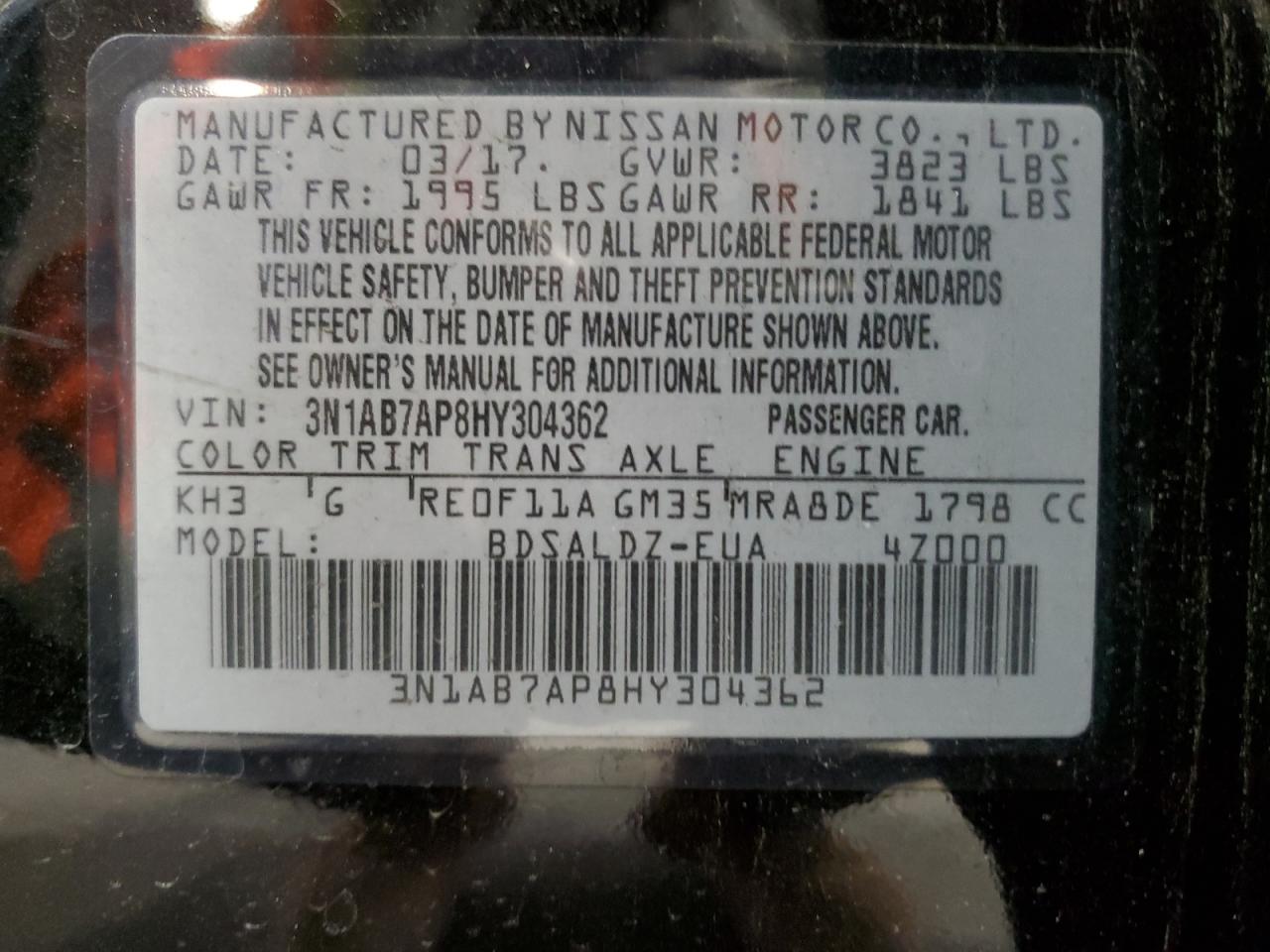 2017 NISSAN SENTRA S из США