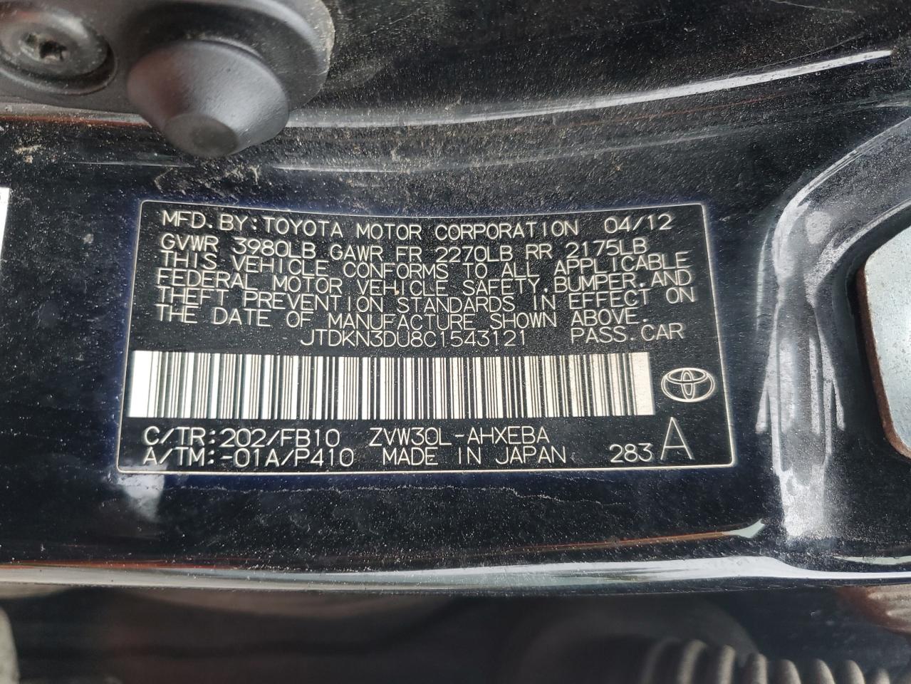 - ВИН: JTDKN3DU8C1******