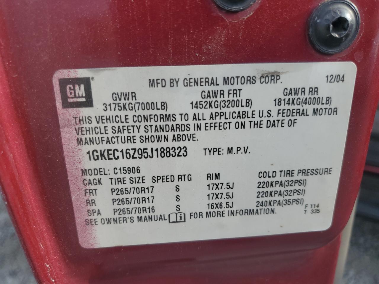 - ВИН: 1GKEC16Z95J******