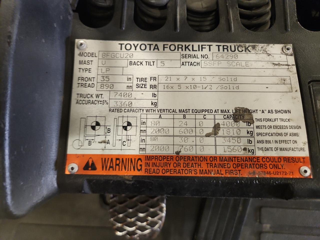 2014 TOYOTA 8FGCU20 FORKLIFT из США