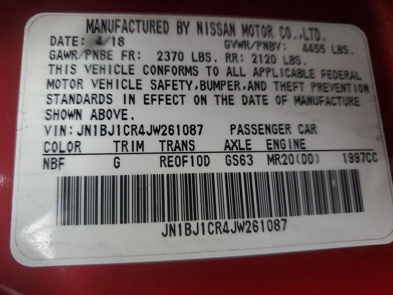 - ВИН: JN1BJ1CR4JW******
