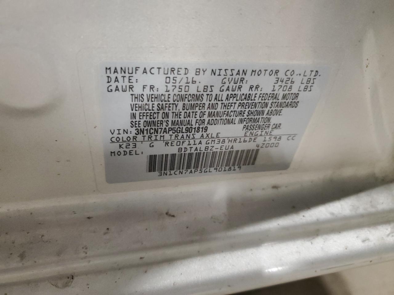 - ВИН: 3N1CN7AP5GL******