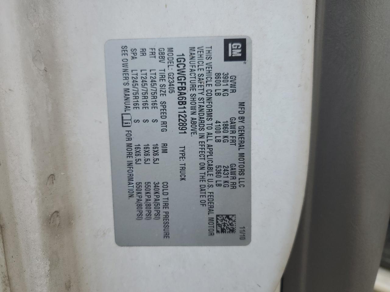 - ВИН: 1GCWGFBA6B1******