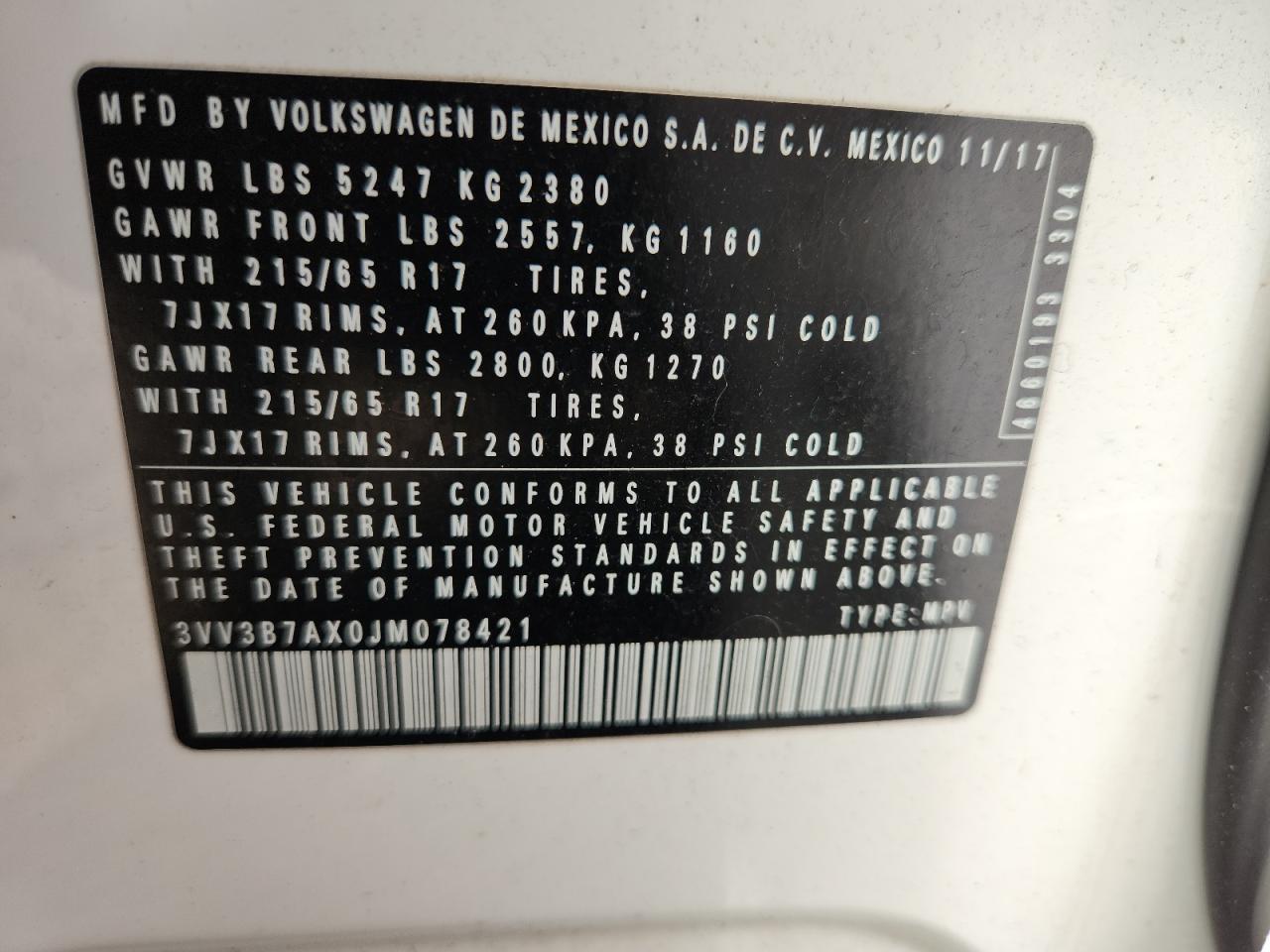 - ВИН: 3VV3B7AX0JM******