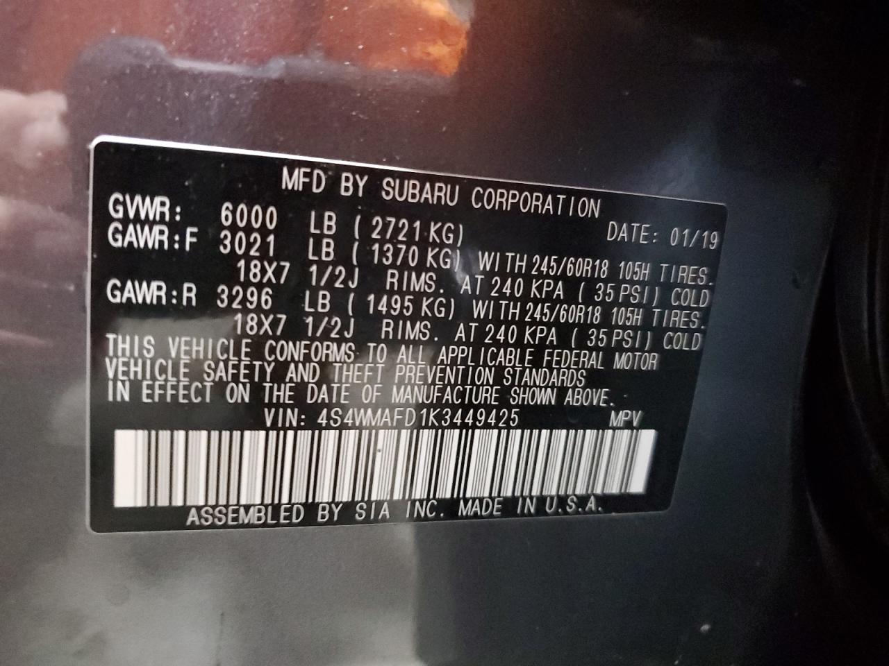 2019 SUBARU ASCENT PREMIUM из США