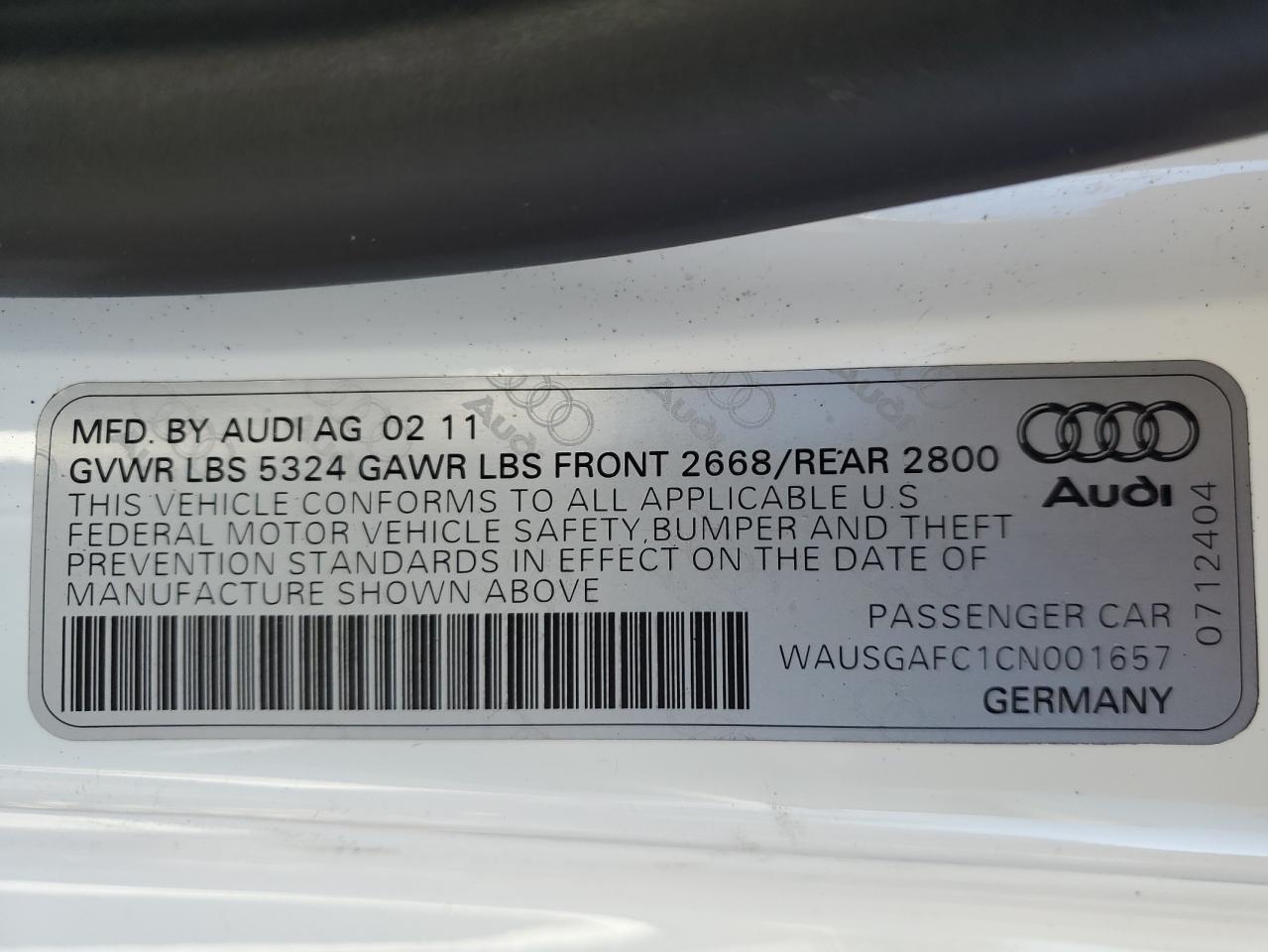 - ВИН: WAUSGAFC1CN******