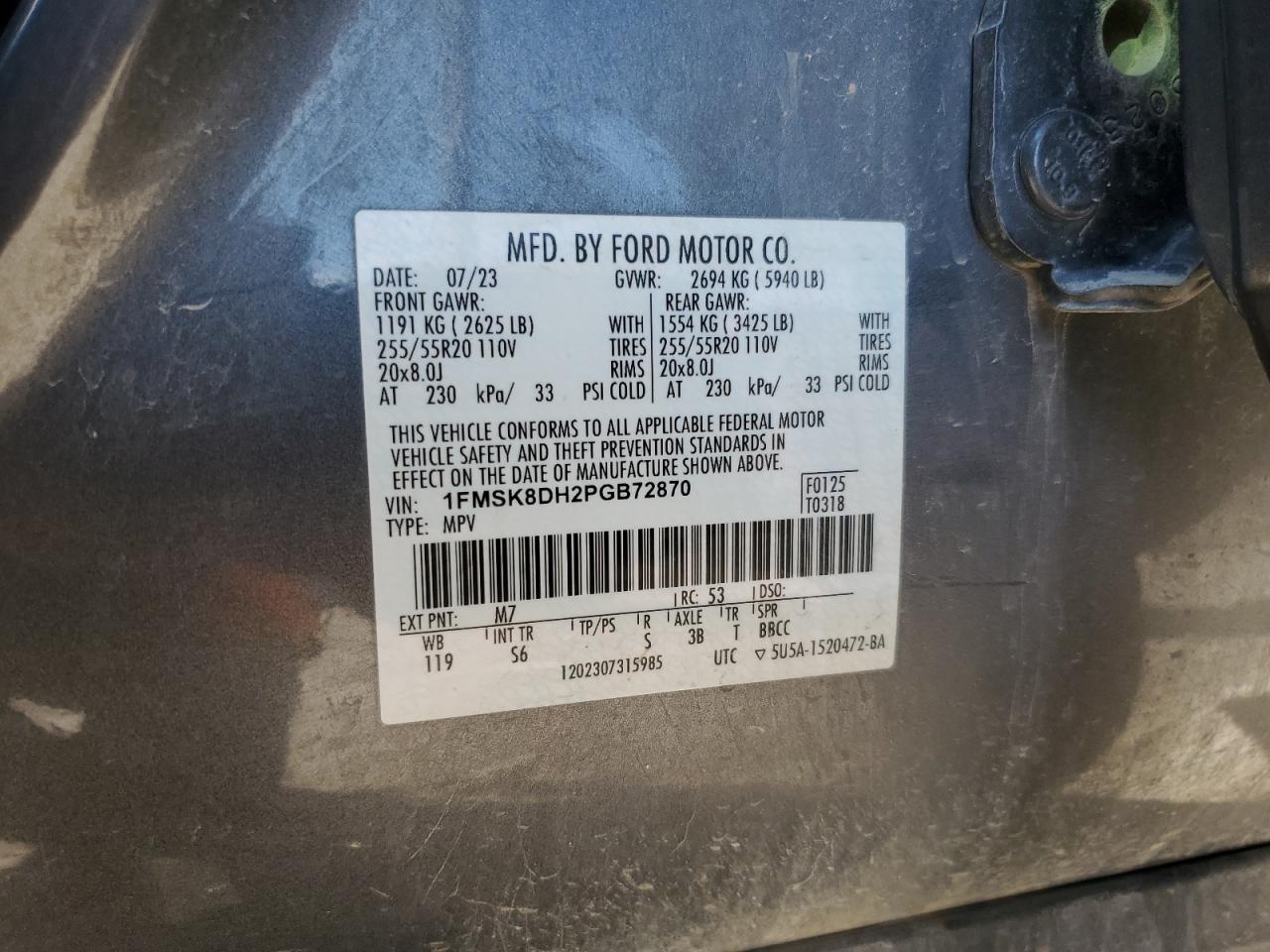 - ВИН: 1FMSK8DH2PG******