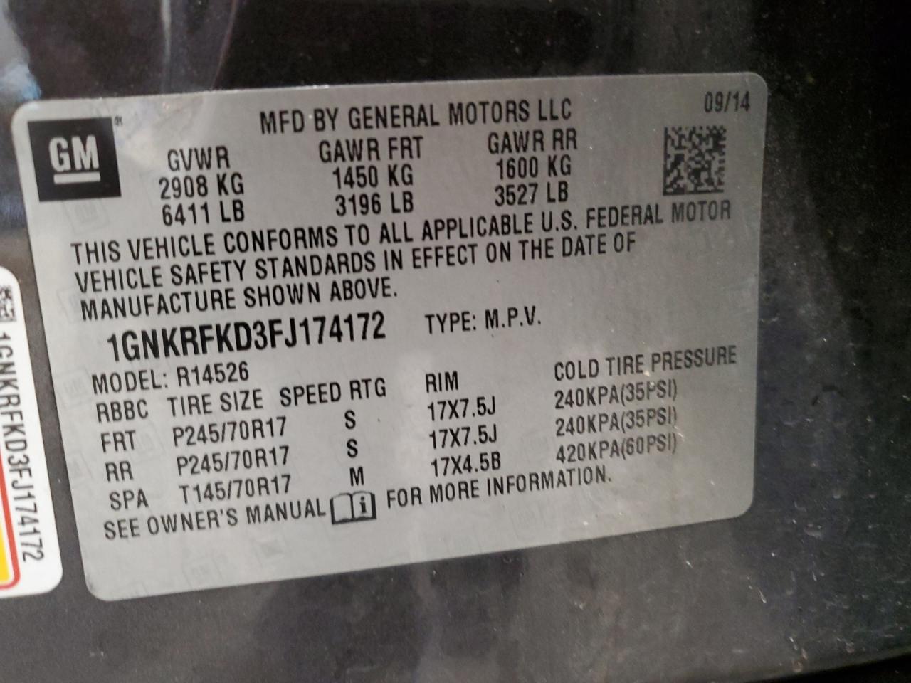- ВИН: 1GNKRFKD3FJ******