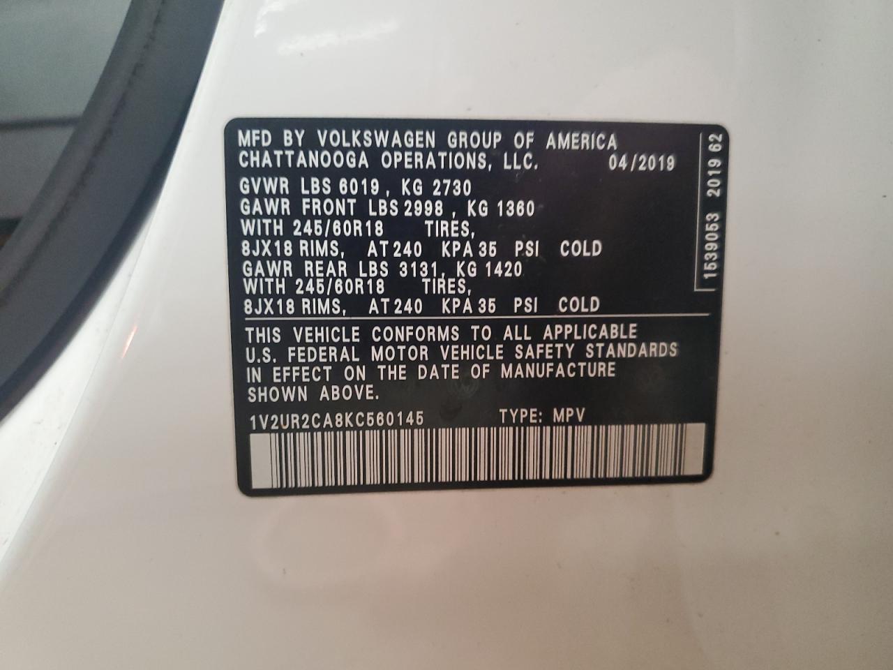 - ВИН: 1V2UR2CA8KC******