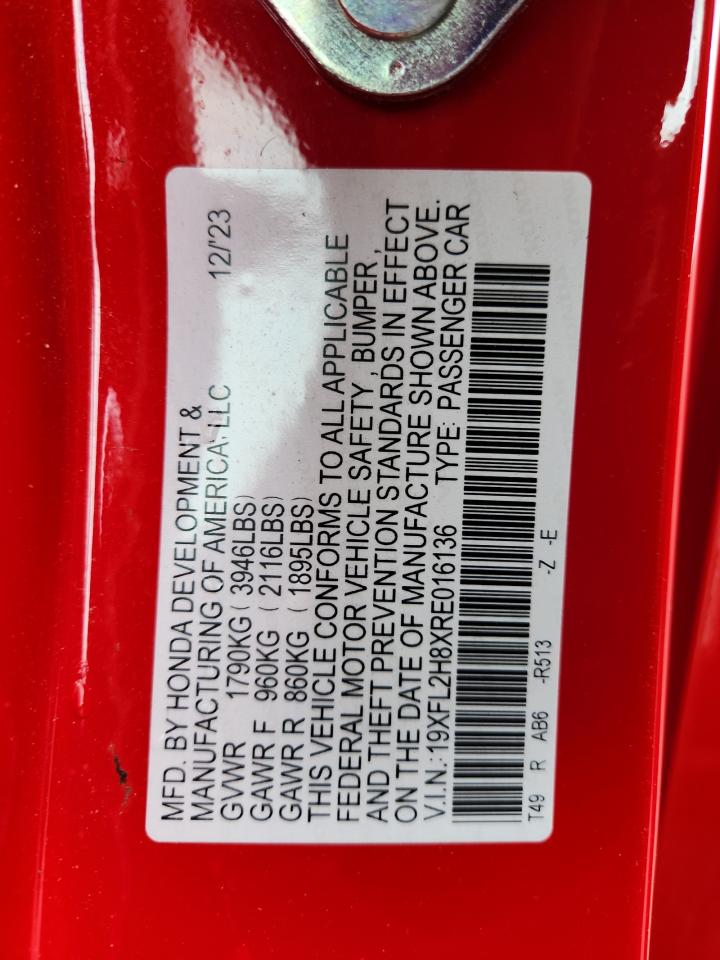 - ВИН: 19XFL2H8XRE******