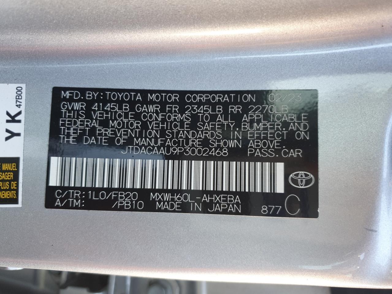 - ВИН: JTDACAAU9P3******