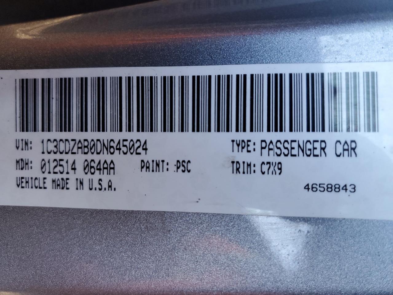 - ВИН: 1C3CDZAB0DN******